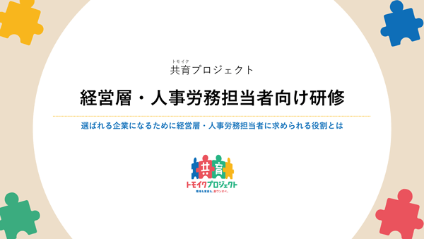 「経営層・人事労務担当者向け」、「管理職向け」の研修資料を公開しています。誰もが働きやすい職場環境づくりの一環として社内研修を行う際に、ぜひお役立てください。