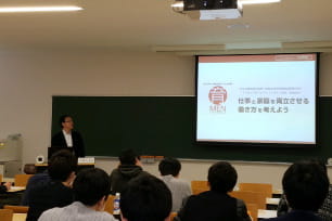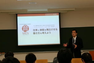 第2回は東京都市大学にて実施しました。第11回「イクメンの星」渡辺 徹氏にご登壇いただき、仕事と家庭の両立における自身の体験談についてお話しいただきました。