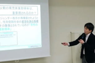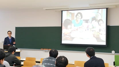 古山助教からは、出産・育児をめぐる男性の変容、父親の育休取得における社会的意義などについて、NPOでの取り組みも踏まえ、講義が行われました。